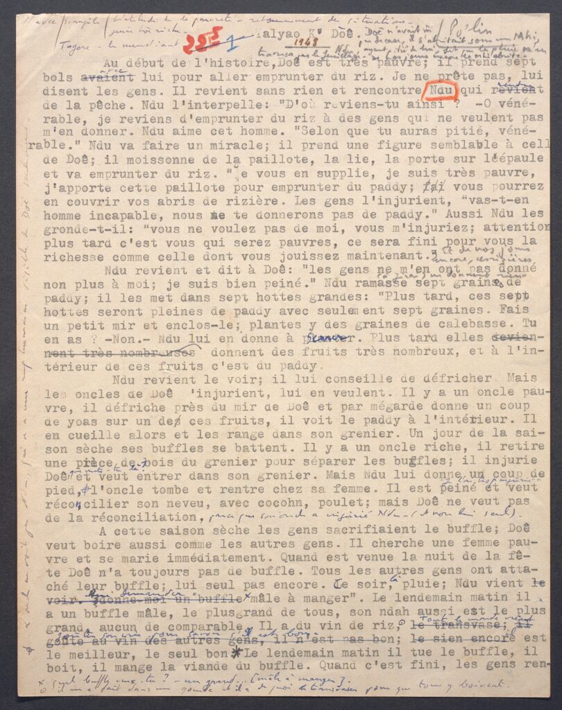 « Tant que la littérature orale est vivante, l’ethnie reste elle-même. On peut voir des gosses nus garder leurs buffles et tenir un transistor contre l’oreille, on peut voir des jeunes gens pétarader sur une moto japonaise, le soir on les retrouve à l’audition d’un mythe. »