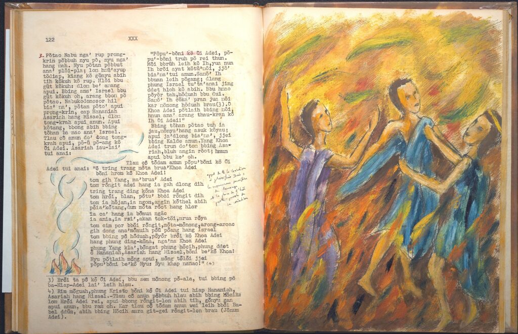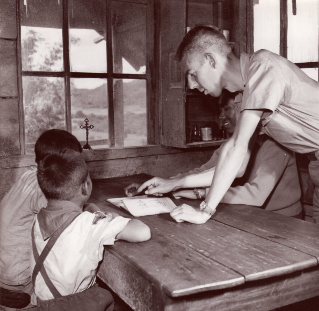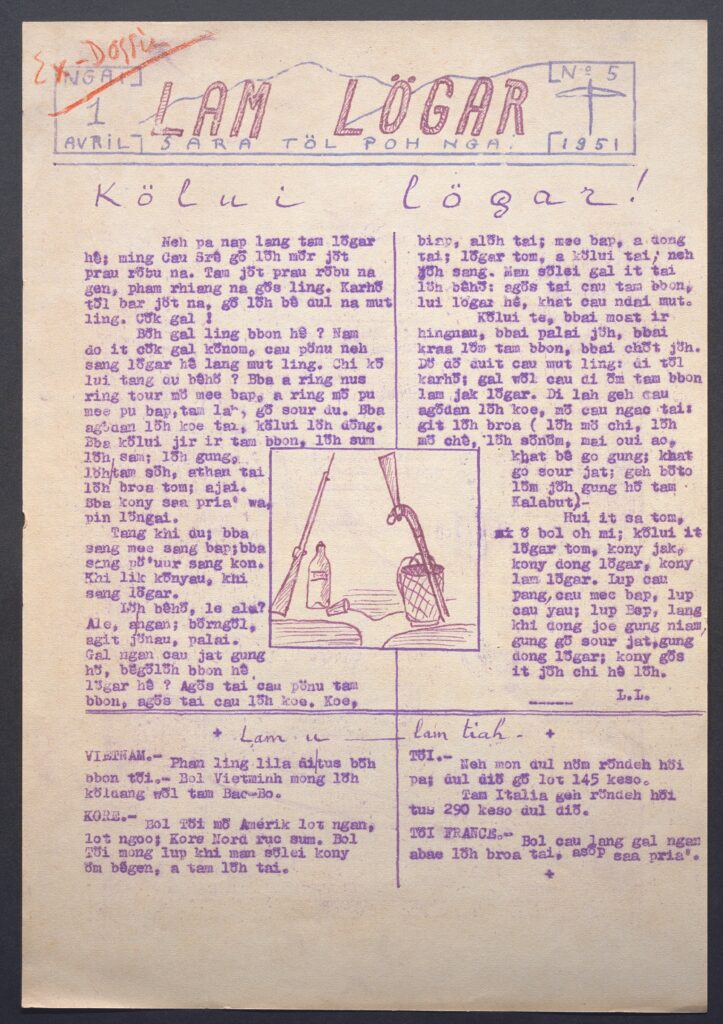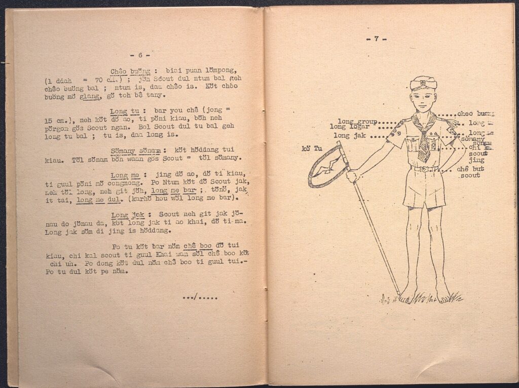 La vie d’apôtre, toujours en tournée pour nouer des liens humains et enseigner, est entremêlée à celle d’ethnographe : la cinquantaine de villages jörai qu’il visite sont autant de terrains de collecte, les camps scouts donnent l’occasion de recueillir les mythes récités lors des veillées.